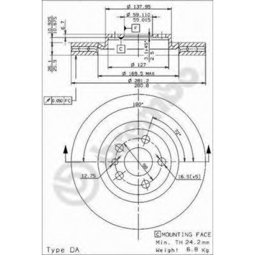 | Диаметр центрирования [мм] | 59 |