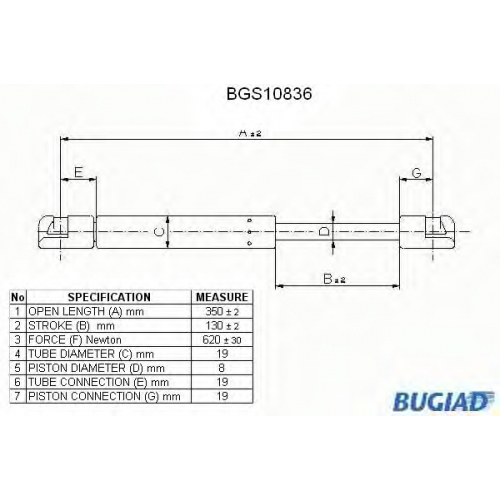 BGS10836 BUGIAD Газовая пружина, крышка багажник