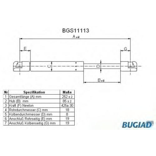 BGS11113 BUGIAD Газовая пружина, крышка багажник