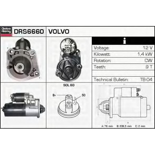 DRS6660 DELCO REMY Стартер DRS6660 DELCO REMY Стартер