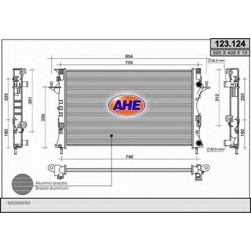 123.124 AHE Радиатор, охлаждение двигателя