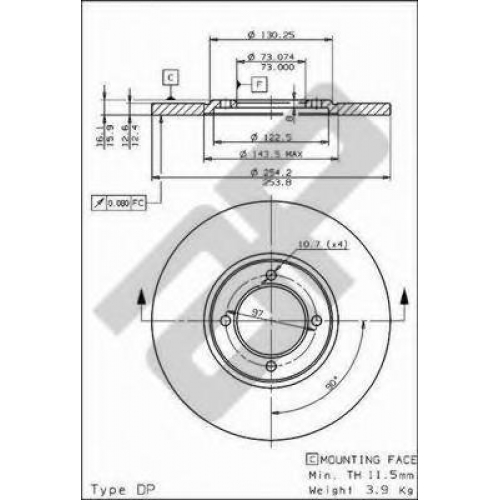 | Толщина тормозного диска (мм) | 12,5 |