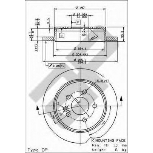 | Толщина тормозного диска (мм) | 15 |