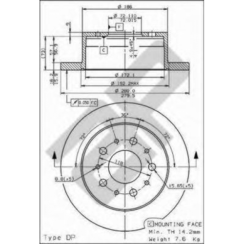 | Диаметр центрирования [мм] | 72 |