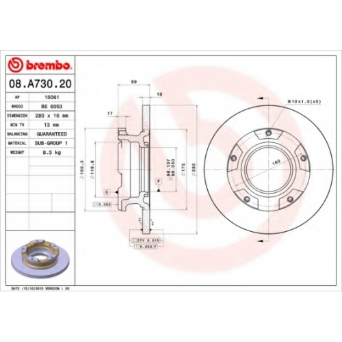 | Толщина тормозного диска (мм) | 16 |