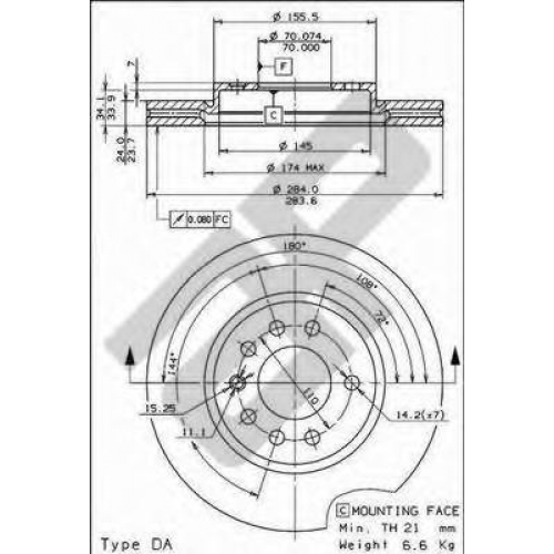 Толщина тормозного диска (мм) 24