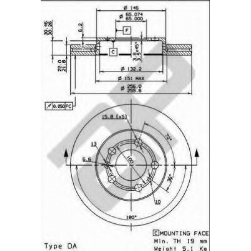 | Толщина тормозного диска (мм) | 22 |