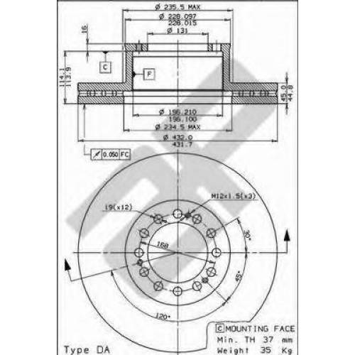 Толщина тормозного диска (мм) 45