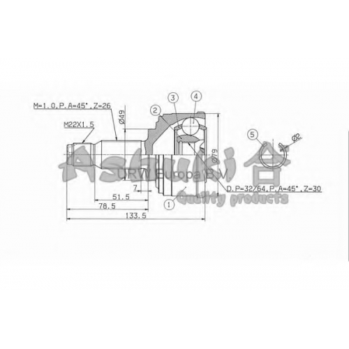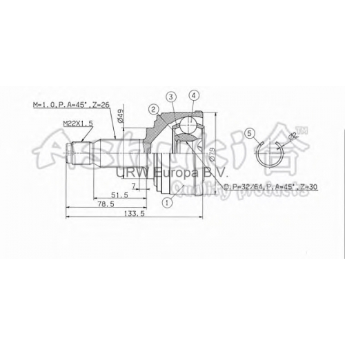 HO-160 ASHUKI Шарнирный комплект, приводной вал