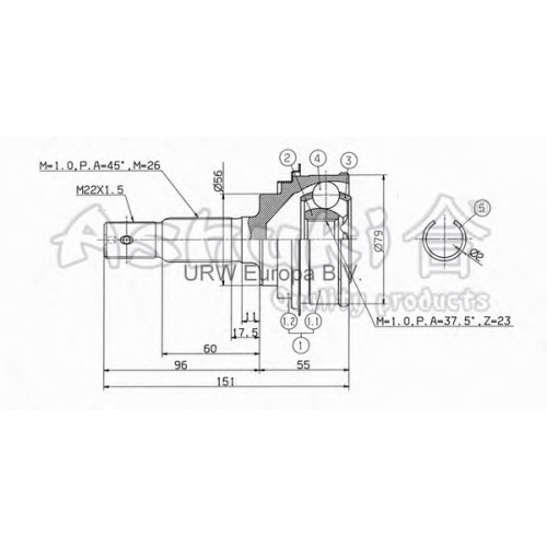TO-2C0 ASHUKI Шарнирный комплект, приводной вал