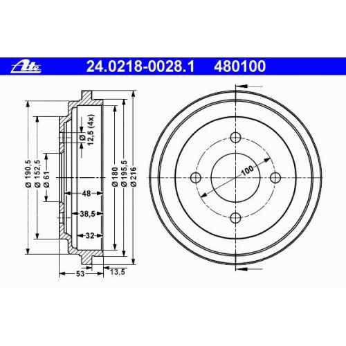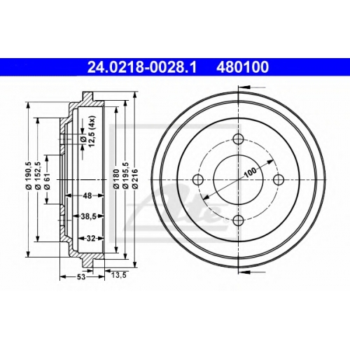 | Общ. высота торм. барабана [мм] | 53 |
