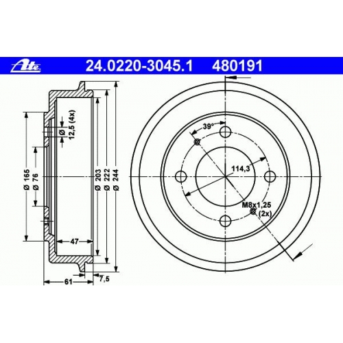| Макс. размер расточки тормозного барабана [мм] | 204,5 |