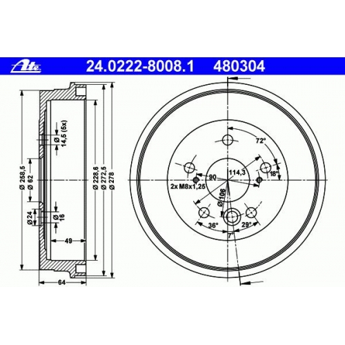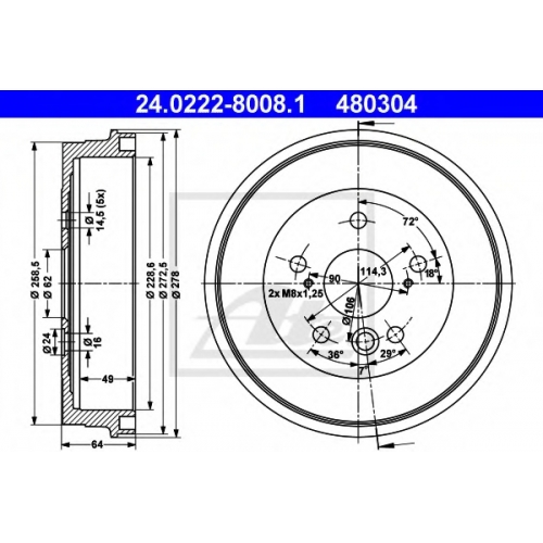 | Общ. высота торм. барабана [мм] | 64 |