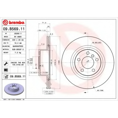 09.B569.11 BREMBO Тормозной диск