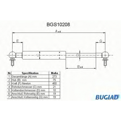 BGS10208 BUGIAD Газовая пружина, крышка багажник