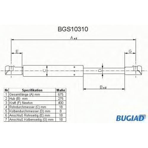BGS10310 BUGIAD Газовая пружина, крышка багажник