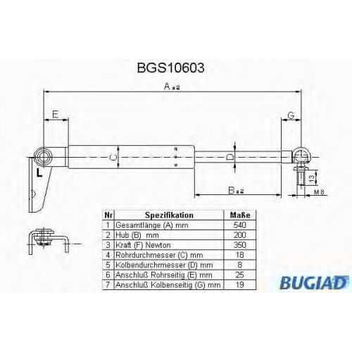 BGS10603 BUGIAD Газовая пружина, крышка багажник