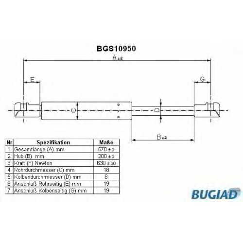 BGS10950 BUGIAD Газовая пружина, крышка багажник