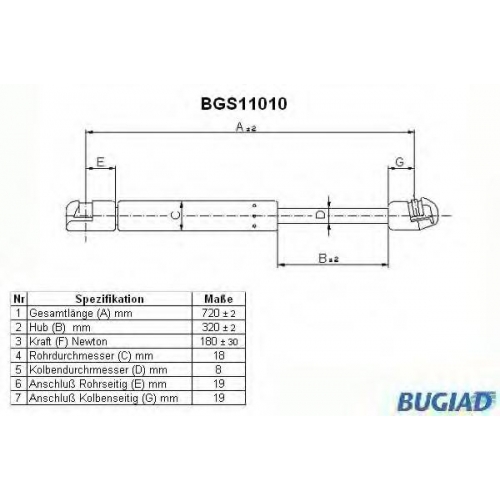 BGS11010 BUGIAD Газовая пружина, капот