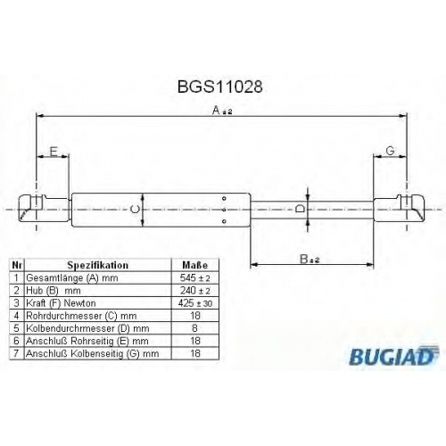 BGS11028 BUGIAD Газовая пружина, крышка багажник