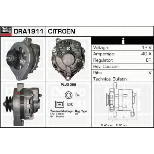 DRA1911 DELCO REMY Генератор