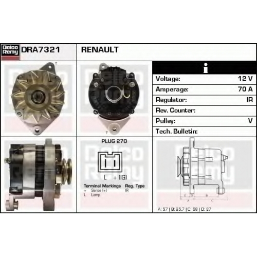 DRA7321 DELCO REMY Генератор