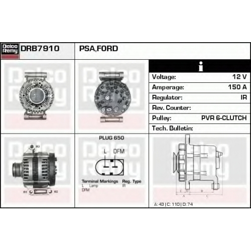 DRB7910 DELCO REMY Генератор