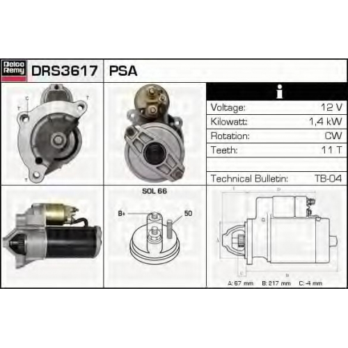 DRS3617 DELCO REMY Стартер