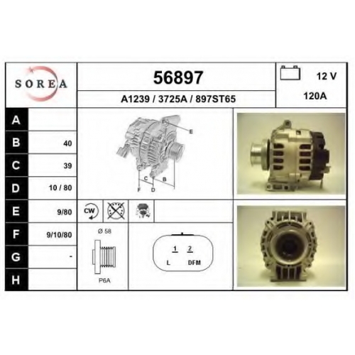| ток зарядки от генератора (А) | 120 |