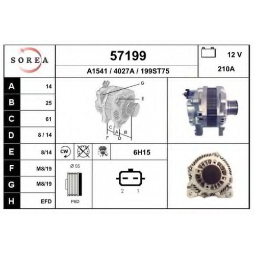 | ток зарядки от генератора (А) | 210 |