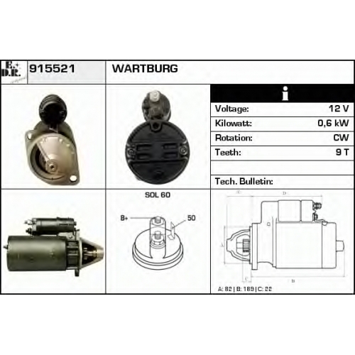 | Мощность стартера [кВт] | 0,6 |