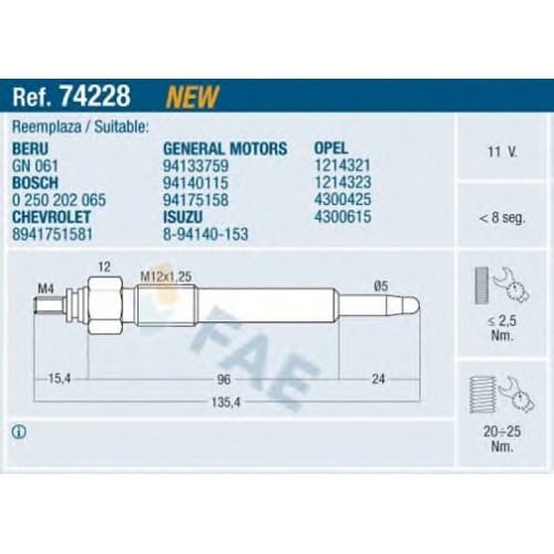 74228 FAE Свеча накаливания