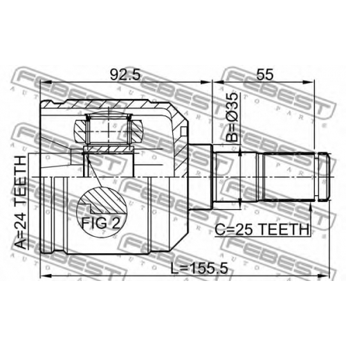 0411-E55 FEBEST Шарнир, приводной вал