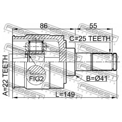 2211-CERII16 FEBEST Шарнир, приводной вал