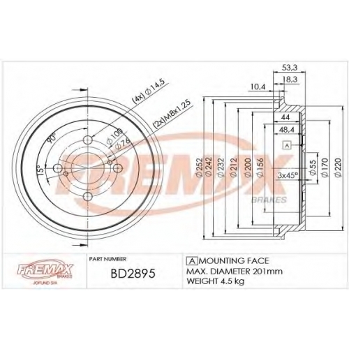BD-2895 FREMAX Тормозной барабан