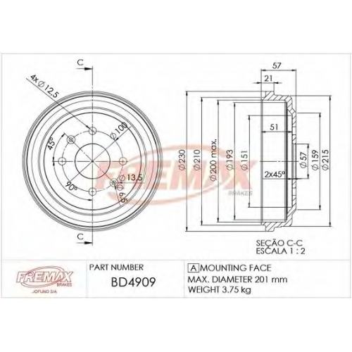 BD-4909 FREMAX Тормозной барабан