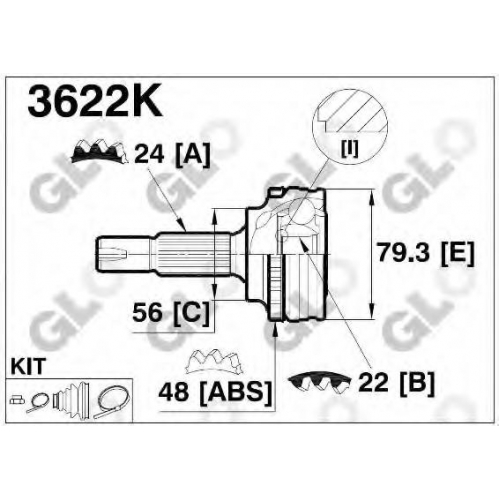 3622K GLO Шарнирный комплект, приводной вал