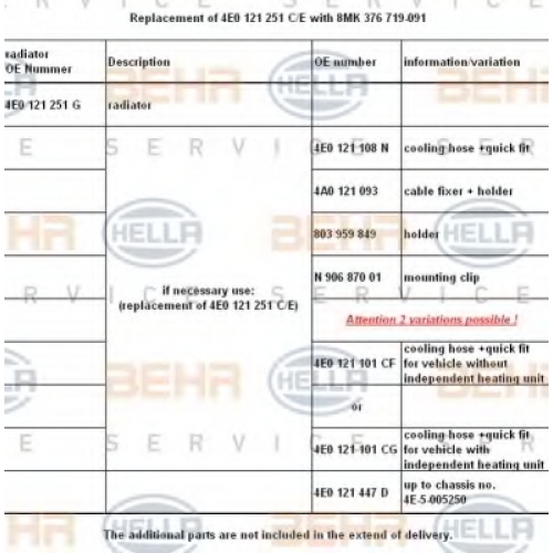 | дополнительно необходимые артикулы (номер артикула) | 4E0 121 101CF/CG |