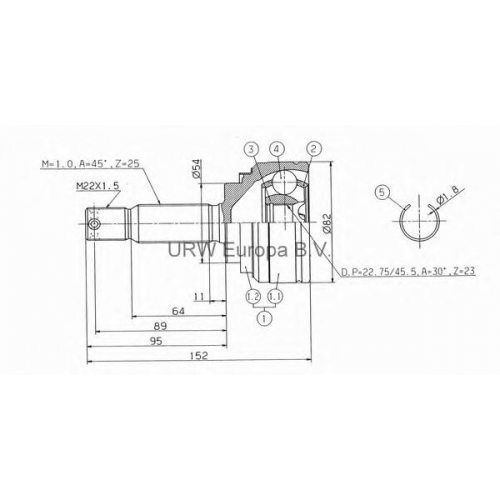 MS612N0 URW Шарнирный комплект, приводной вал