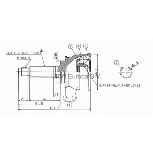 MS713B0 URW Шарнирный комплект, приводной вал