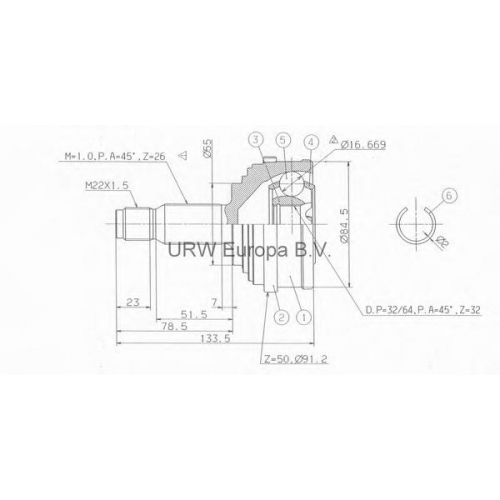 MS813L0 URW Шарнирный комплект, приводной вал