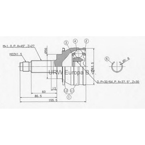 MS91320 URW Шарнирный комплект, приводной вал