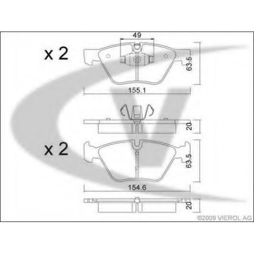 V20-8155 VEMO/VAICO Комплект тормозных колодок, дисковый тормоз
